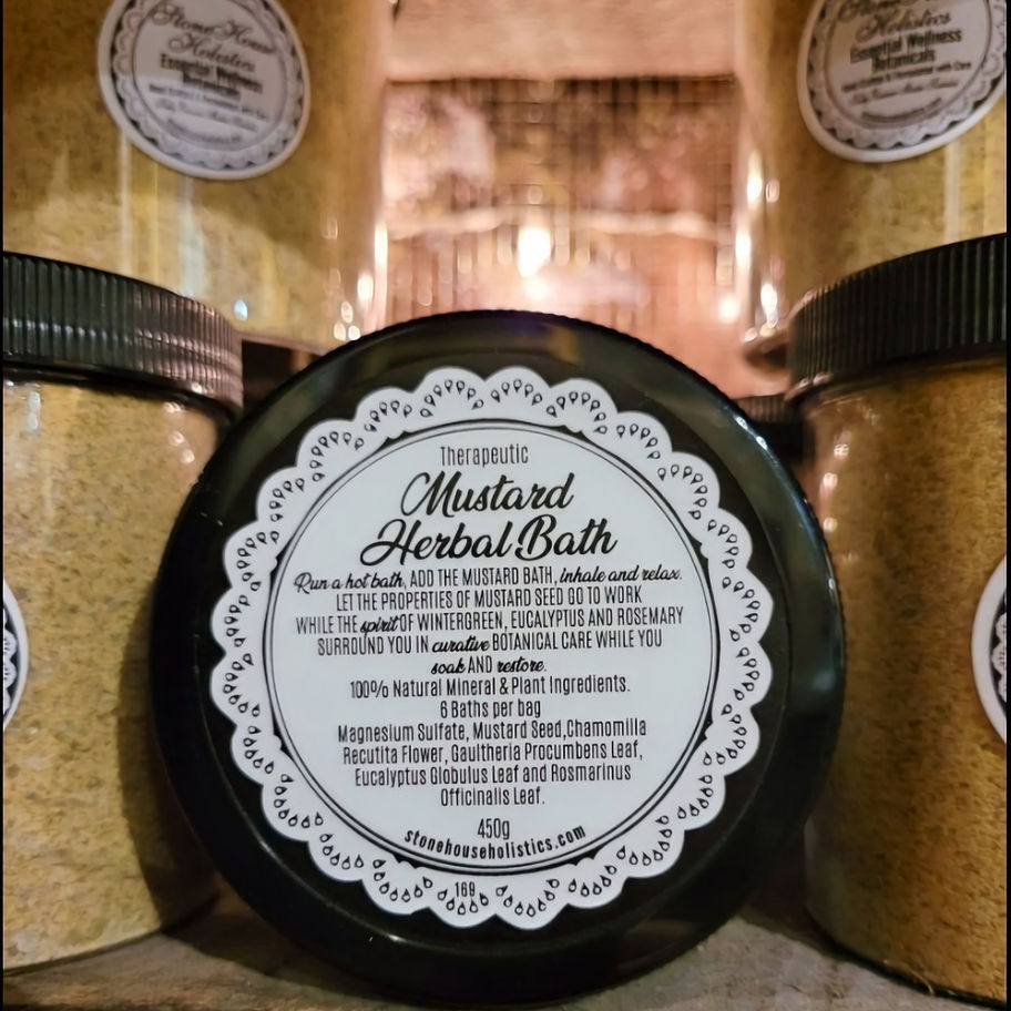 Run a hot bath, add Therapeutic Mustard Bath step in ~ inhale and relax. The therapeutic properties of mustard seed go to work while the spirit of wintergreen, eucalyptus and rosemary surround you in a botanically curative cape while you soak and restore. It's nothing to sneeze at.. It can get you down when you’re feeling under the weather. Try a 20 minute Mustard Bath. Simply run a hot bath, add the mustard bath, inhale and relax. A PLANT-BASED SPA at HOME. 100% Natural.